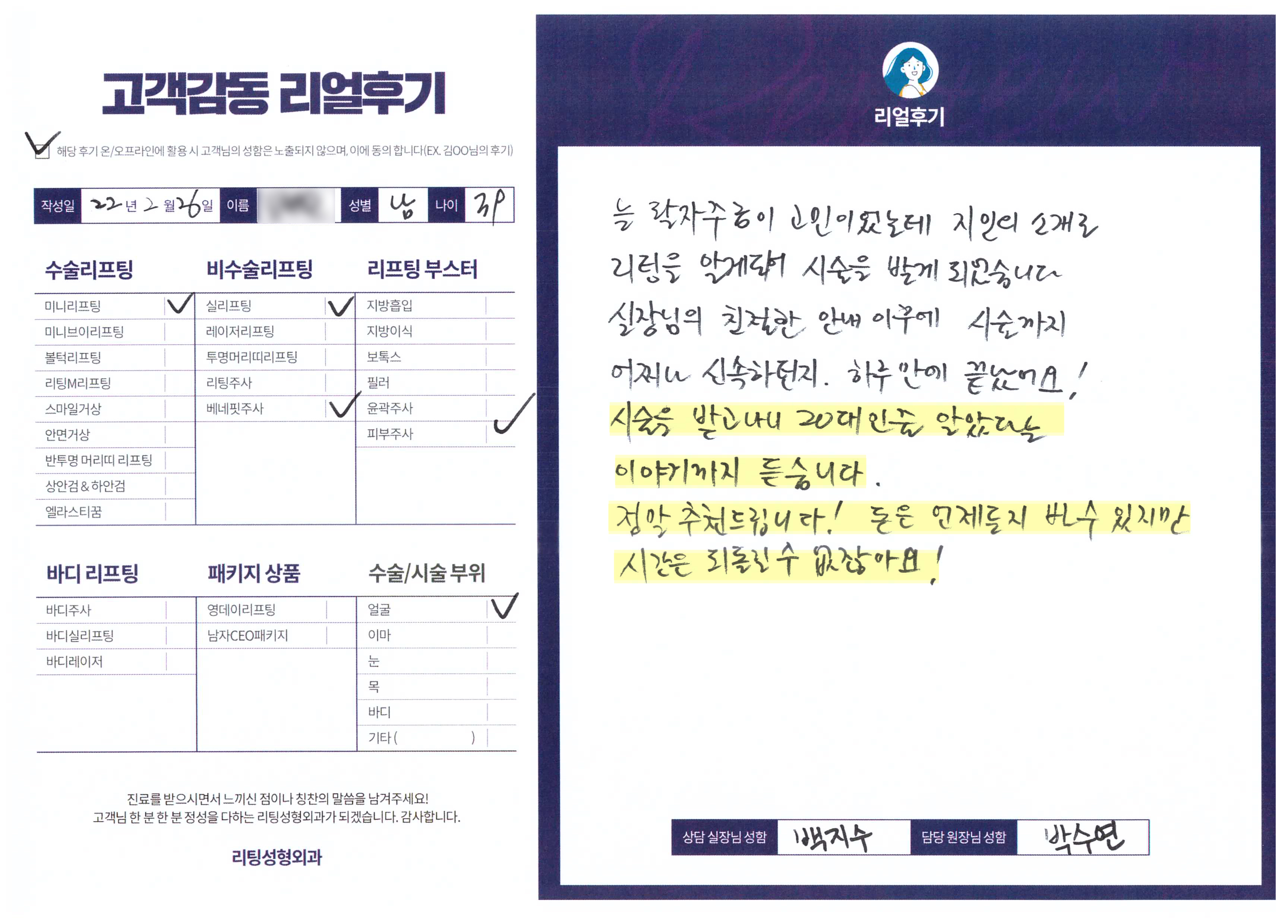 박OO님의 후기 입니다.