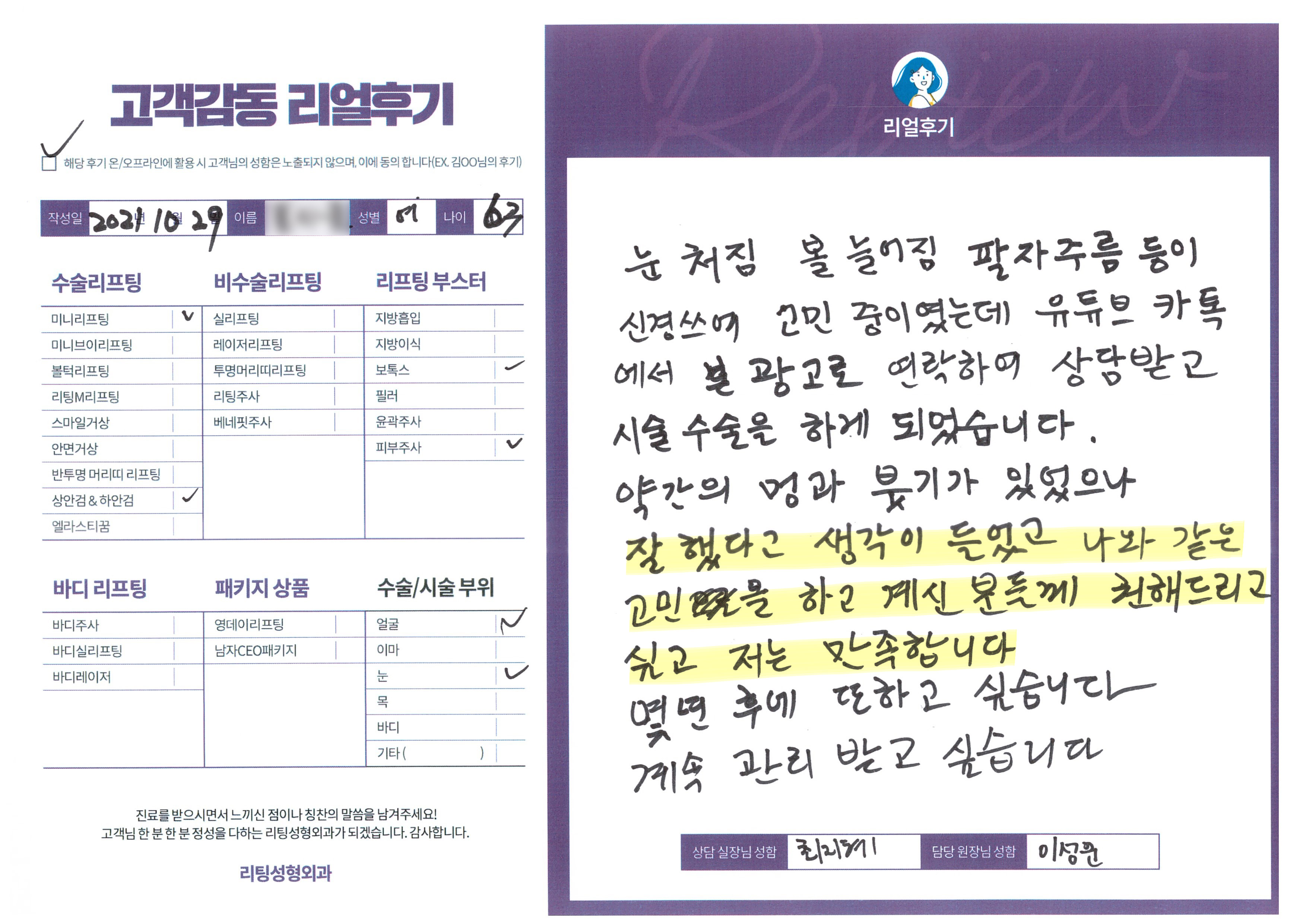 얼굴전체,눈수술리프팅,리프팅부스터
