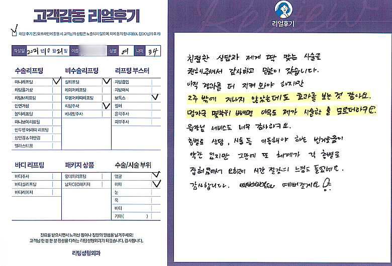 김OO님의 후기입니다.