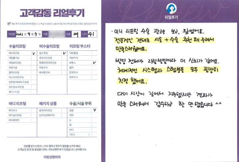 서OO님의 후기입니다.