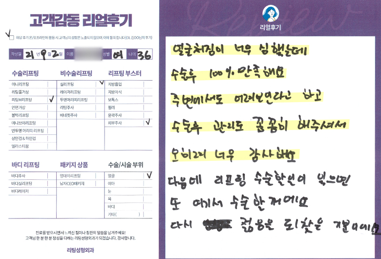 얼굴전체,눈수술리프팅