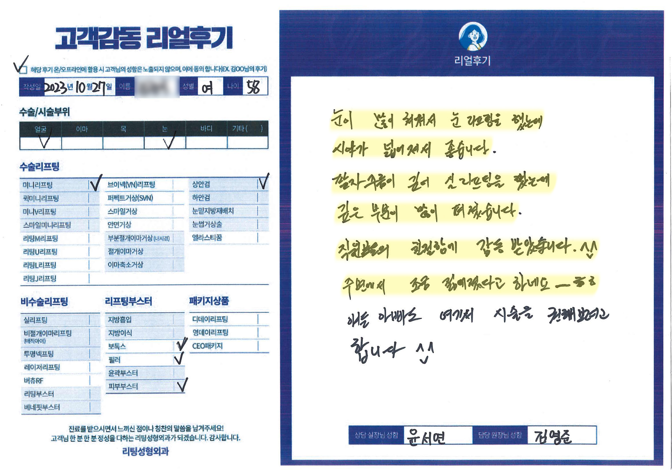 얼굴전체,눈수술리프팅,리프팅부스터