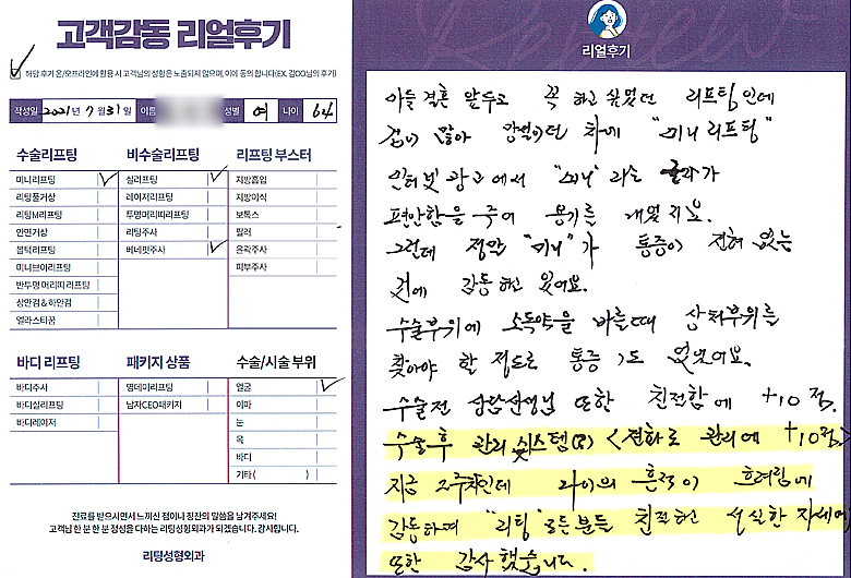 얼굴전체,눈수술리프팅