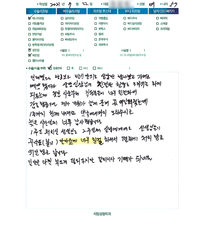 얼굴전체,눈수술리프팅