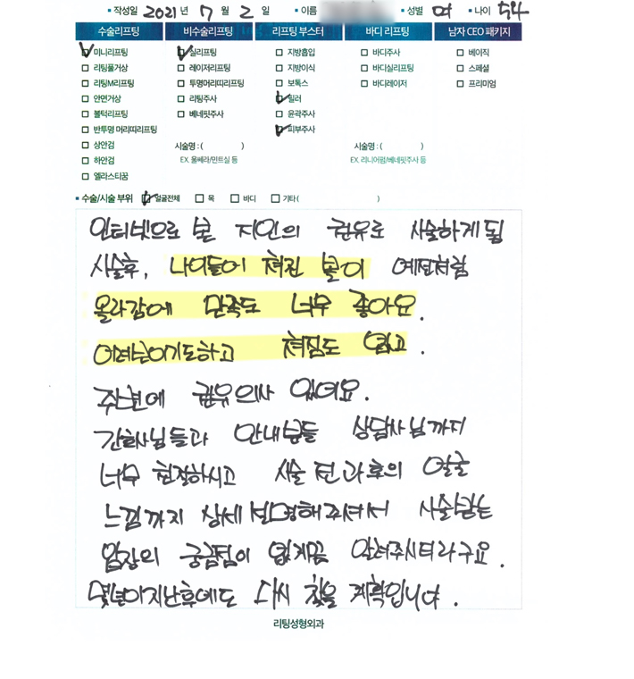 장OO님의 후기입니다