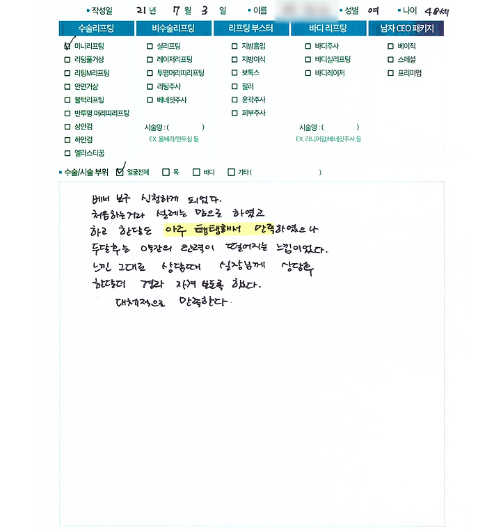 얼굴전체수술리프팅,비수술 리프팅,리프팅부스터
