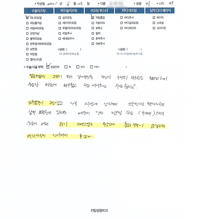 얼굴전체수술리프팅
