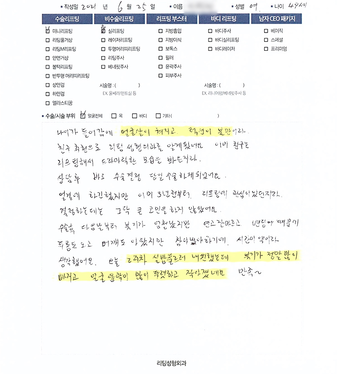 얼굴전체수술리프팅,비수술 리프팅