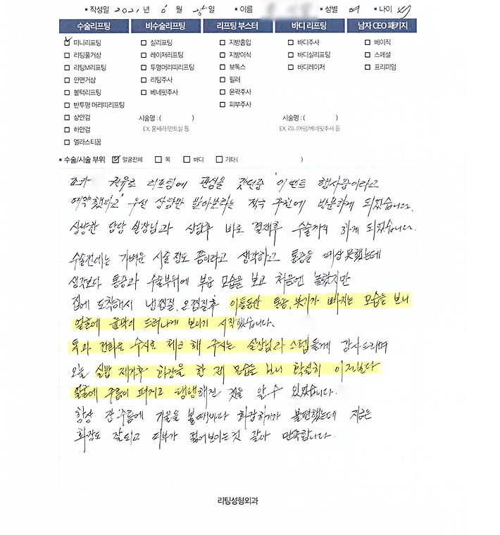 얼굴전체허OO님의 후기입니다