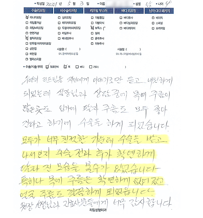 얼굴전체,목수술리프팅,리프팅부스터