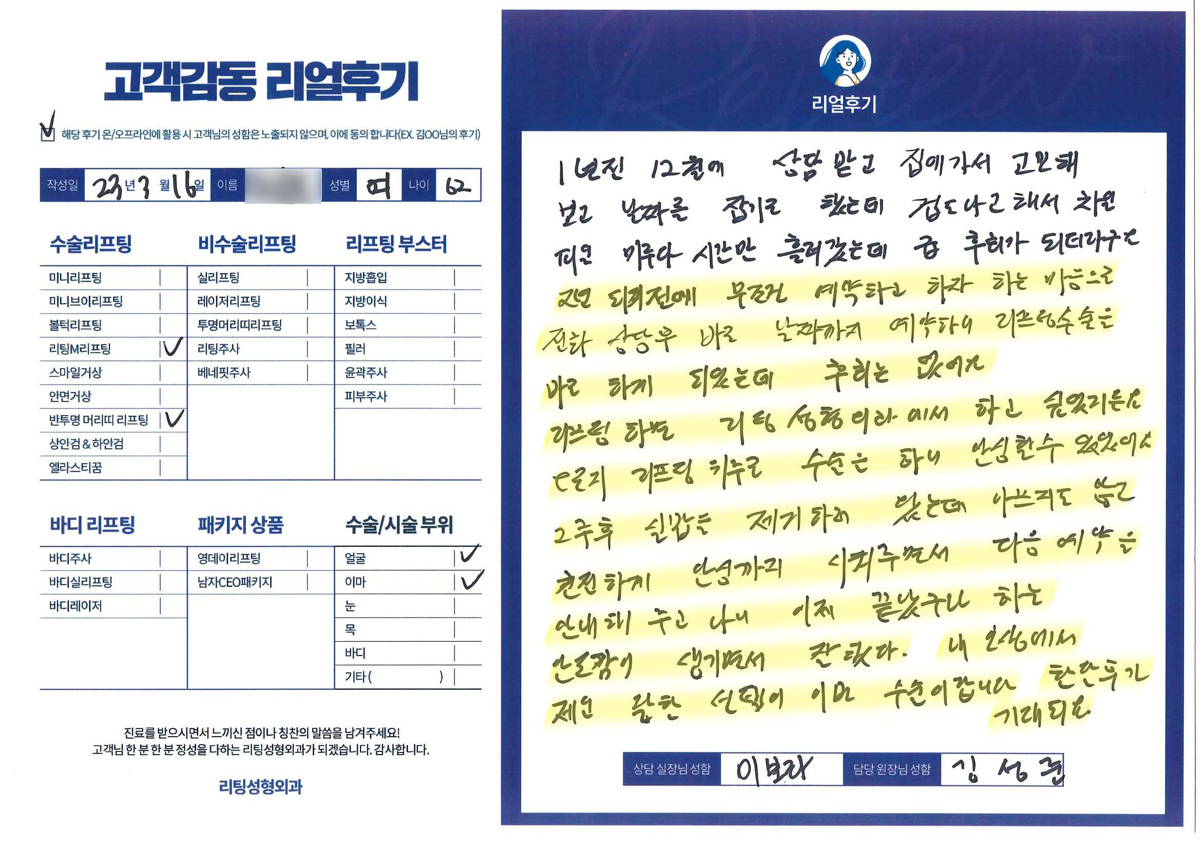 얼굴전체,이마수술리프팅