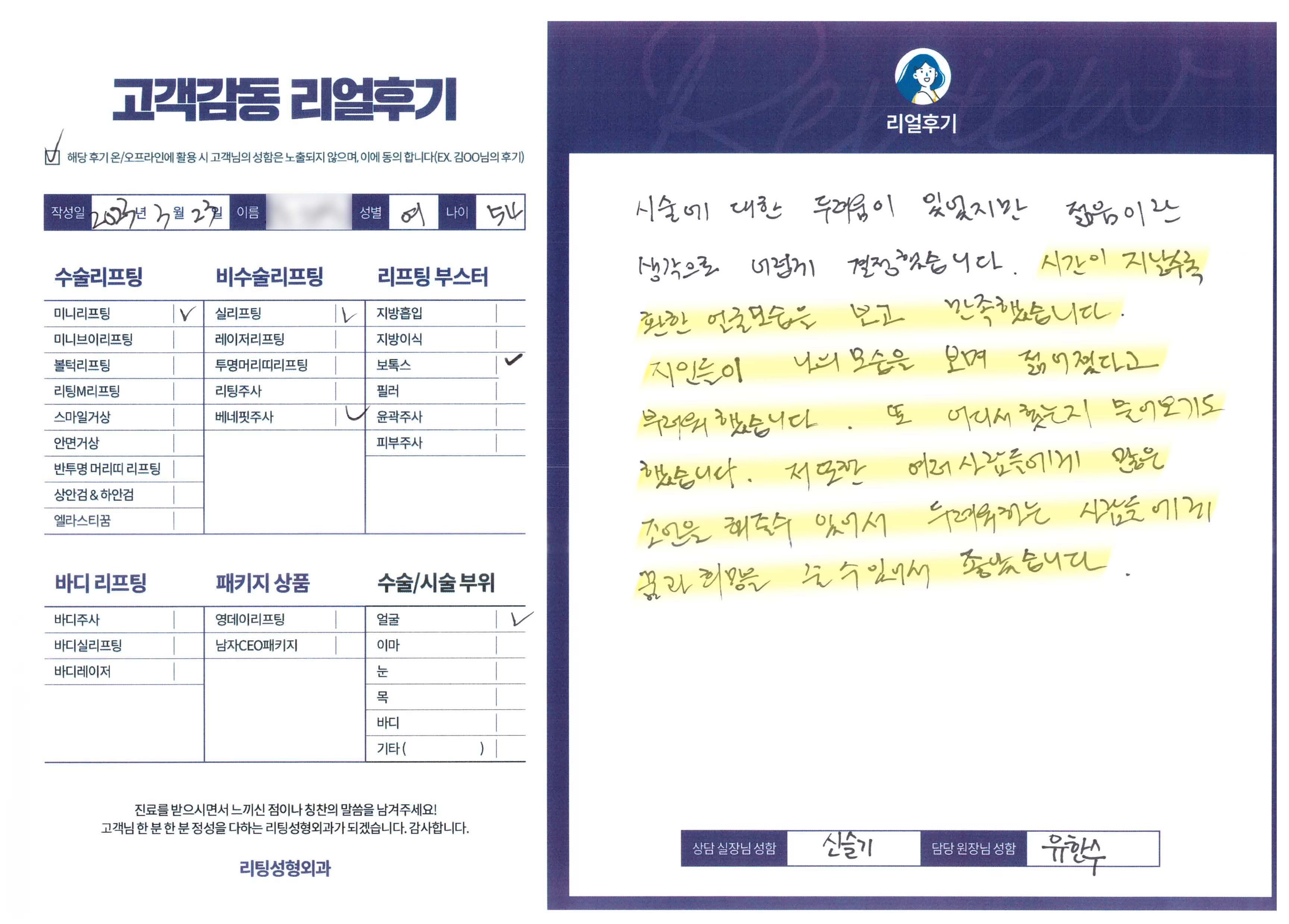 얼굴전체,눈비수술 리프팅,수술리프팅
